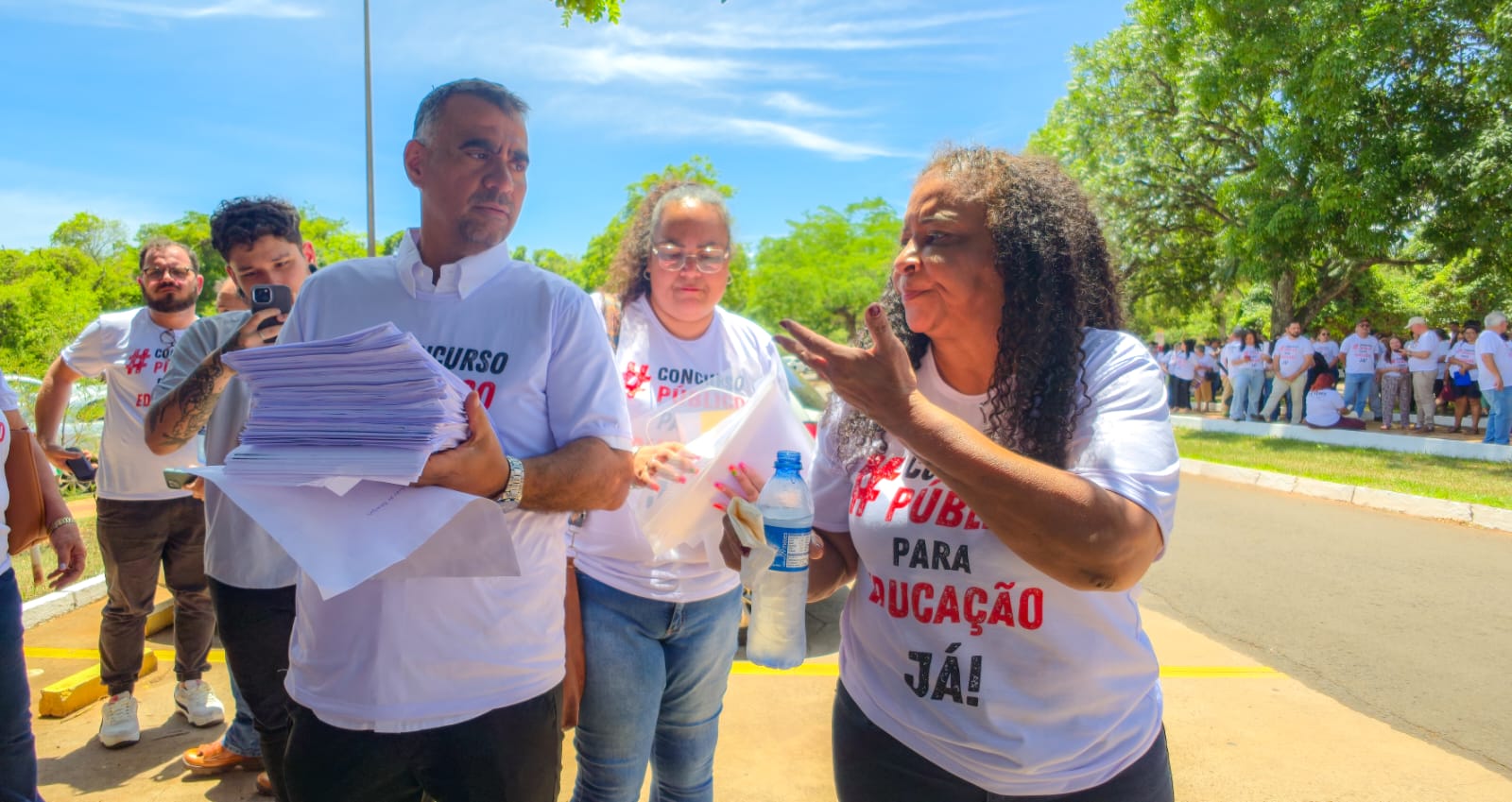 Durante a mobilização, foi protocolado na Mesa Diretora da Assembleia Legislativa um abaixo-assinado com mais de 90 mil assinaturas, exigindo do Governo do Estado a realização de concursos públicos para recomposição do quadro efetivo da educação. A entrega simbólica, acompanhada por parlamentares, marcou o compromisso coletivo da categoria com a valorização e a dignidade do trabalho docente.