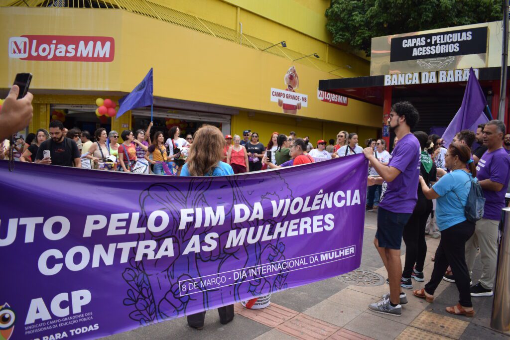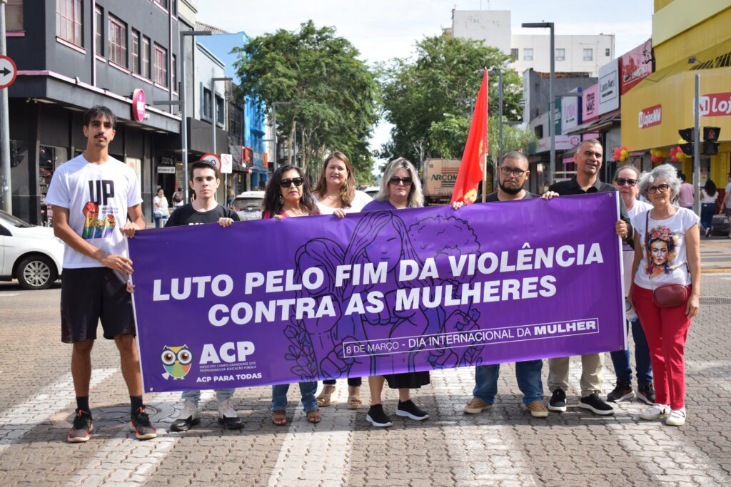 Representantes da ACP, Sindicato Campo-grandense dos Profissionais da Educação Pública, participaram na manhã de sábado (7) de um ato público no centro de Campo Grande em defesa da vida das mulheres e pelo fim da violência de gênero. A mobilização aconteceu no cruzamento das ruas 14 de Julho e Barão do Rio Branco e reuniu manifestantes, movimentos sociais e organizações com cartazes e palavras de ordem contra o feminicídio.