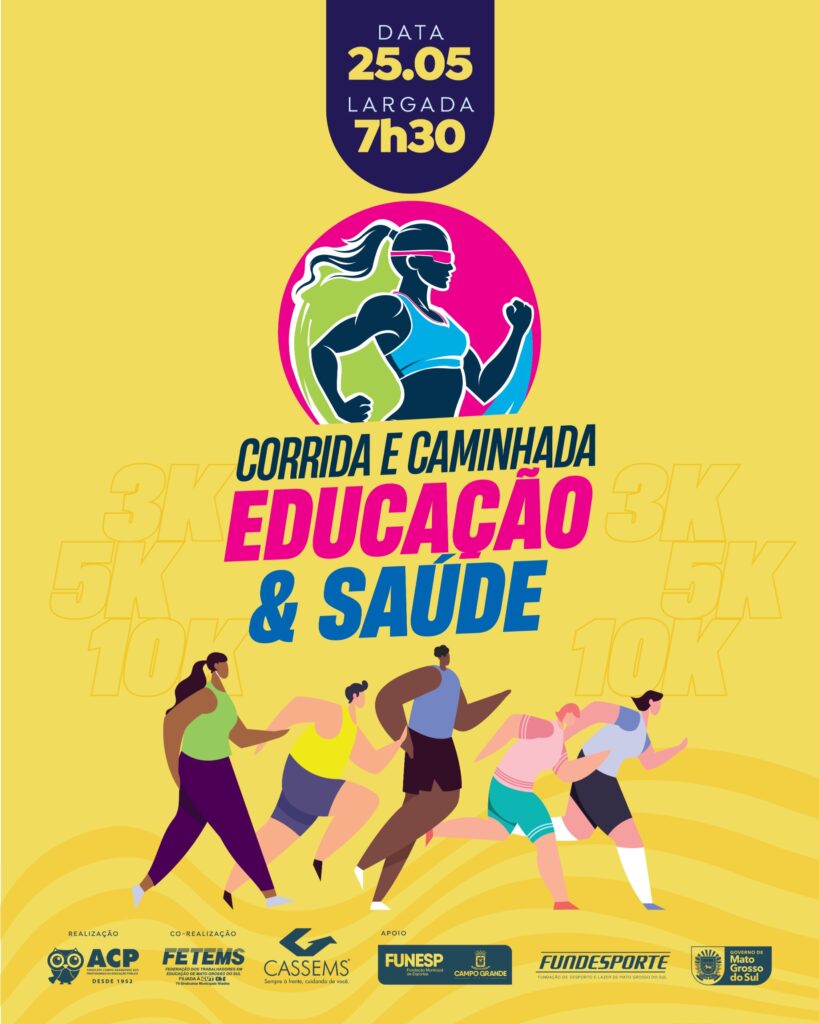 Neste domingo (25), acontece a Corrida e Caminhada Educação & Saúde – ACP 2025, evento esportivo que celebra os 73 anos da ACP (Sindicato Campo-grandense dos Profissionais da Educação Pública). A atividade promete reunir milhares de participantes, entre filiados da ACP, da FETEMS (Federação dos Trabalhadores em Educação de Mato Grosso do Sul), beneficiários da CASSEMS (Caixa de Assistência dos Servidores do Estado de MS) e a comunidade em geral.