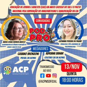 Novo episódio do PodPrô abordará políticas para Educação de Jovens e Adultos em Mato Grosso do Sul